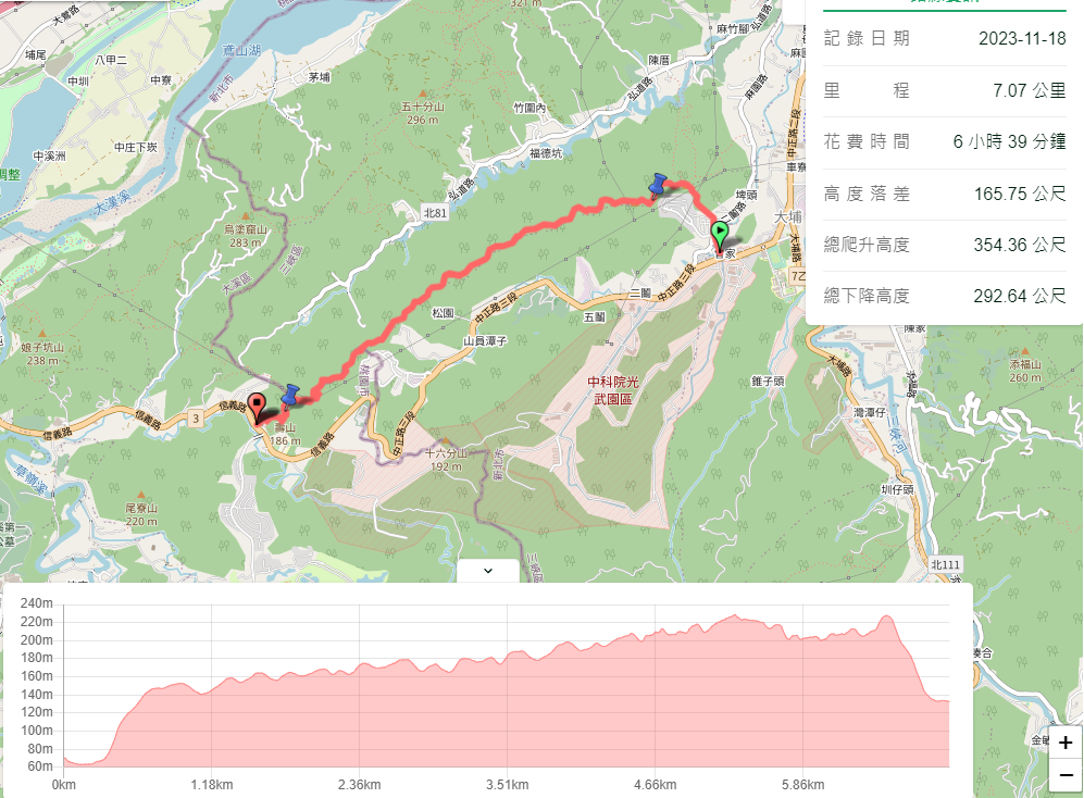 之前只有縱走過到那一段( 三峽國小-老街-鳶山大鐘-鳶山(福德坑山)-五十分山-烏塗窟山-娘子坑山-山豬湖生態園區-月眉濕地公園(落羽松熱點)-李騰芳古宅-大溪老街 ),